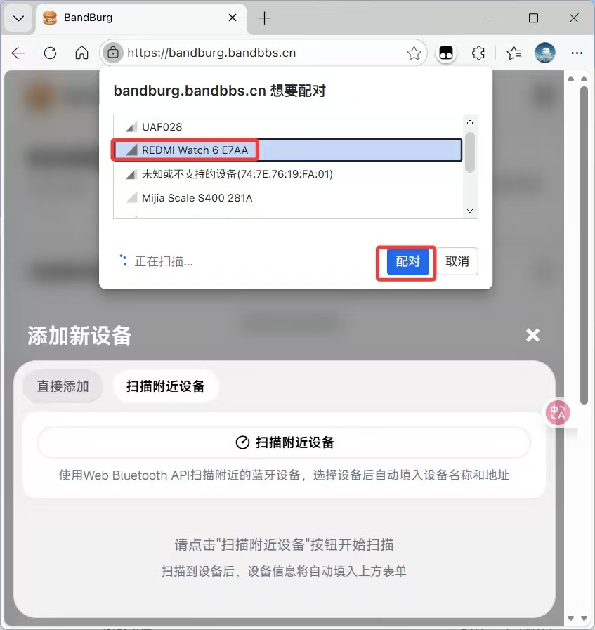 点击【扫描附近设备】- 【扫描附近设备】