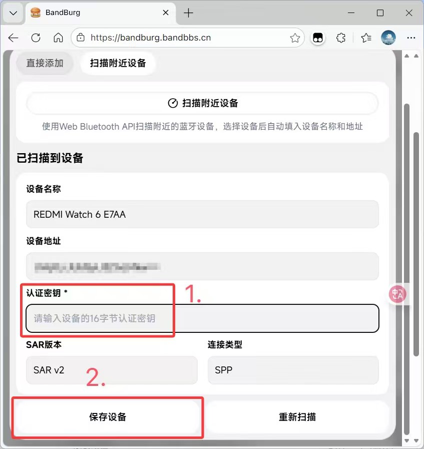填入你的Authkey,点击保存设备