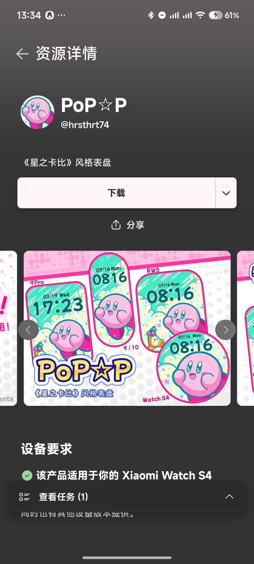 点击主页,然后找到心仪的表盘,点击图片进入详情